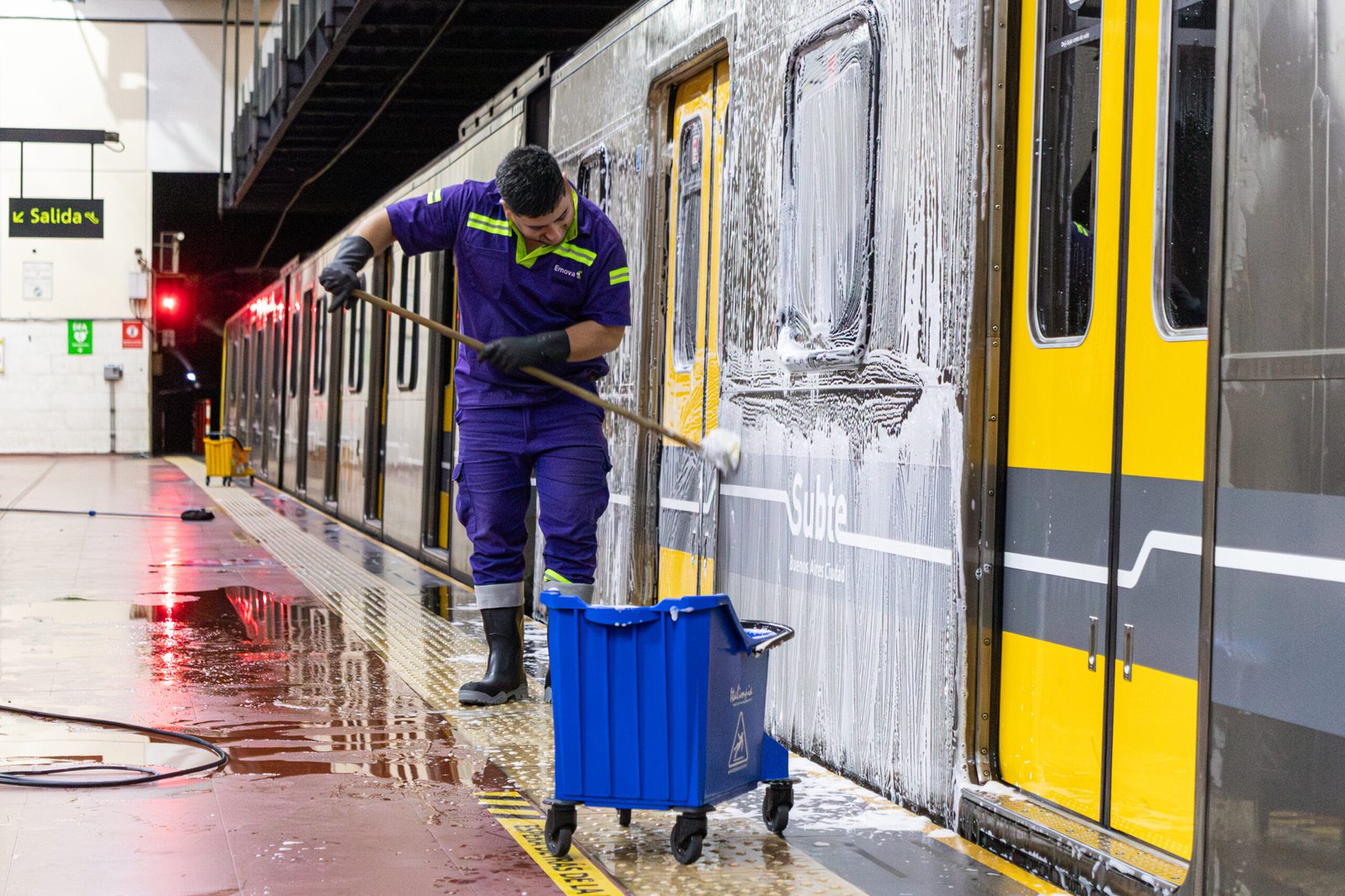 Todas las noches, al finalizar el servicio, se activa un plan integral de limpieza y desinfección en las seis líneas de la red de subterráneos. El objetivo es asegurar que las instalaciones y los trenes estén en óptimas condiciones para el inicio de la operación diaria.