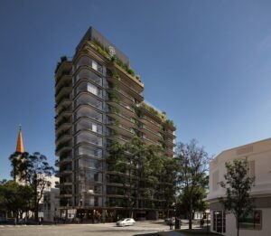 Entre las novedades está Río 4, de Estudio Kohon. Ubicado en Río de Janeiro 577, a dos cuadras del Parque Centenario, posee 83 departamentos de uno a cuatro ambientes, con amenities, desde US$ 2800/m2.